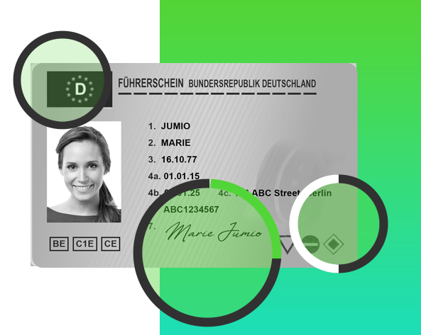 Jumio führt eine Reihe von KI-gesteuerten Betrugsprüfungen an diesen Ausweisdokumenten durch, um sicherzustellen, dass der eingereichte Ausweis mit diesen staatlichen Vorlagen übereinstimmt und keine Anzeichen für betrügerische Manipulationen wie Text- oder Fotomanipulationen aufweist. Mit Hilfe von informierter KI-Technologien können unsere fortschrittlichen maschinellen Lernmodelle ausgeklügelte Angriffe erkennen, die für das menschliche Auge nicht zu erkennen sind.