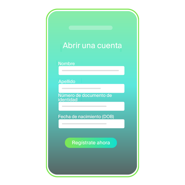 Cuando comienza el onboarding o la creación de la cuenta, el usuario proporciona a la empresa la información del documento de identidad necesaria.(p. ej., nombre, fecha de nacimiento).