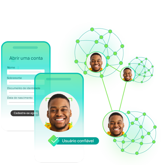 A Jumio corresponde a selfie e os dados do usuário com registros de identidade confiáveis dentro do Identity Graph, realizando análises de risco em tempo real usando os sinais de inteligência global da Jumio.
